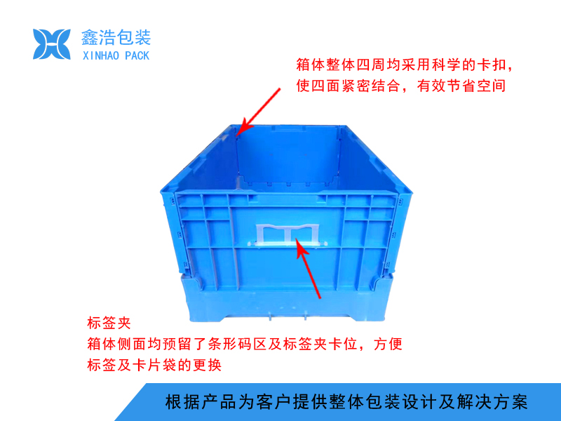 产品参数产品型号:折叠箱外径尺寸:670*450*235内径尺寸:635*420*215单箱承重:30KG堆码层数:4层产品可增加以下服务:定制颜色 防静电 配盖 印刷LOGO 标签夹 防尘帘